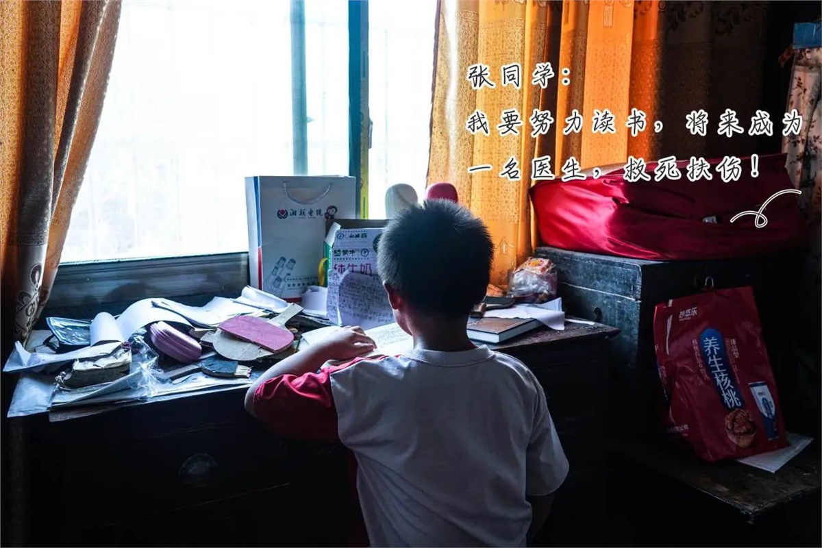 張同學(xué):10歲,母親去世,父親患腎病綜合癥,無(wú)法勞動(dòng),需定期前往長(zhǎng)沙醫(yī)院就診復(fù)查,家中還有年邁的奶奶,需要照顧贍養(yǎng)。盡管家庭經(jīng)濟(jì)條件遇到困難,但其父依然十分重視教育,希望孩子能夠通過(guò)讀書(shū)改變命運(yùn)。